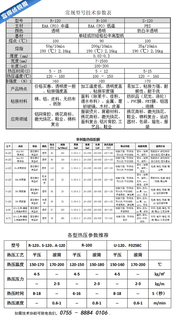 7、無囟阻燃熱熔膠膜(UL94V0):鋁片、橡皮布壓合(印刷版材用);